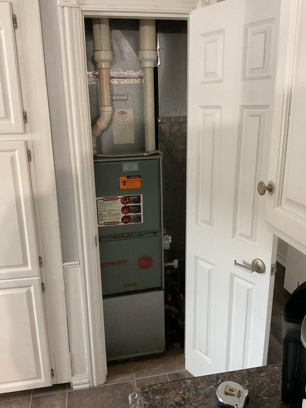 Conducted on-site inspection of existing furnace unit located in utility closet. Evaluated current installation including ductwork connections, PVC intake/exhaust venting, and surrounding insulation. Prepared comprehensive replacement estimate for customer consideration.