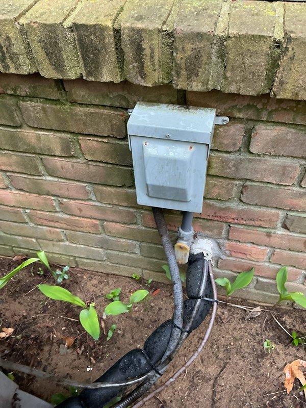 Completed routine cooling maintenance inspection on residential HVAC system. Verified proper operation of outdoor condensing unit, confirmed electrical disconnect box functionality and secure conduit connections, and documented equipment condition with photographs showing all components in serviceable condition with normal wear patterns.