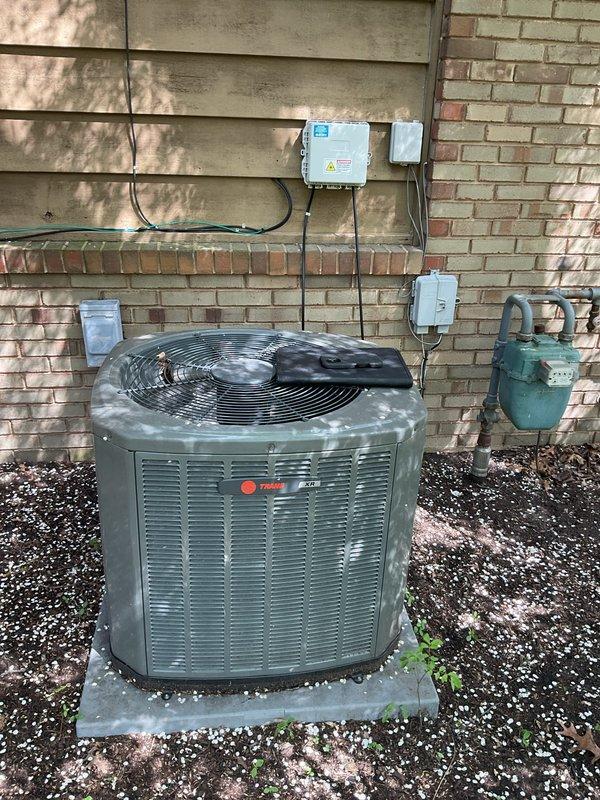 Performed site evaluation and equipment assessment for HVAC system replacement during pre-purchase home inspection process. Existing Trane condensing unit was determined to be undersized for the residence based on load calculations and current system capacity. Provided comprehensive estimate for upsizing complete HVAC system to meet proper heating and cooling requirements for the home's square footage and layout.