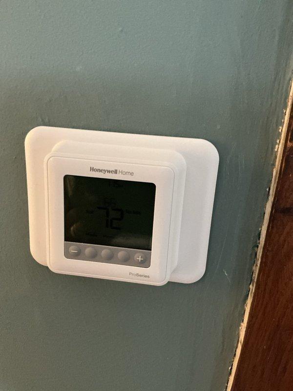 Diagnosed communication issue between Honeywell thermostat and furnace despite recent battery replacement. Verified thermostat was properly mounted and functional, displaying correct temperature (72°F). Restored communication by resetting control board connections at furnace, resolving the non-responsive operation issue.