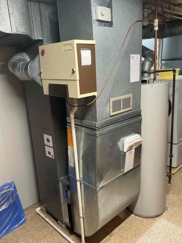 Conducted detailed inspection of existing furnace, documenting considerable wear on internal components including motor assembly and electrical wiring. Assessment revealed replacement as most suitable option due to age of unit and potential inefficiency. Proposed installation of new furnace system with proper integration to existing water filtration/humidifier components.